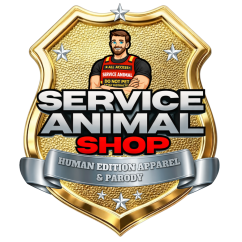 Service Animal Shop is a parody merchandise brand built on admiration, not imitation. We create humorous, fictional designs that imagine a world where humans proudly wear gear inspired by the discipline, focus, and responsibility demonstrated daily by real service animals.